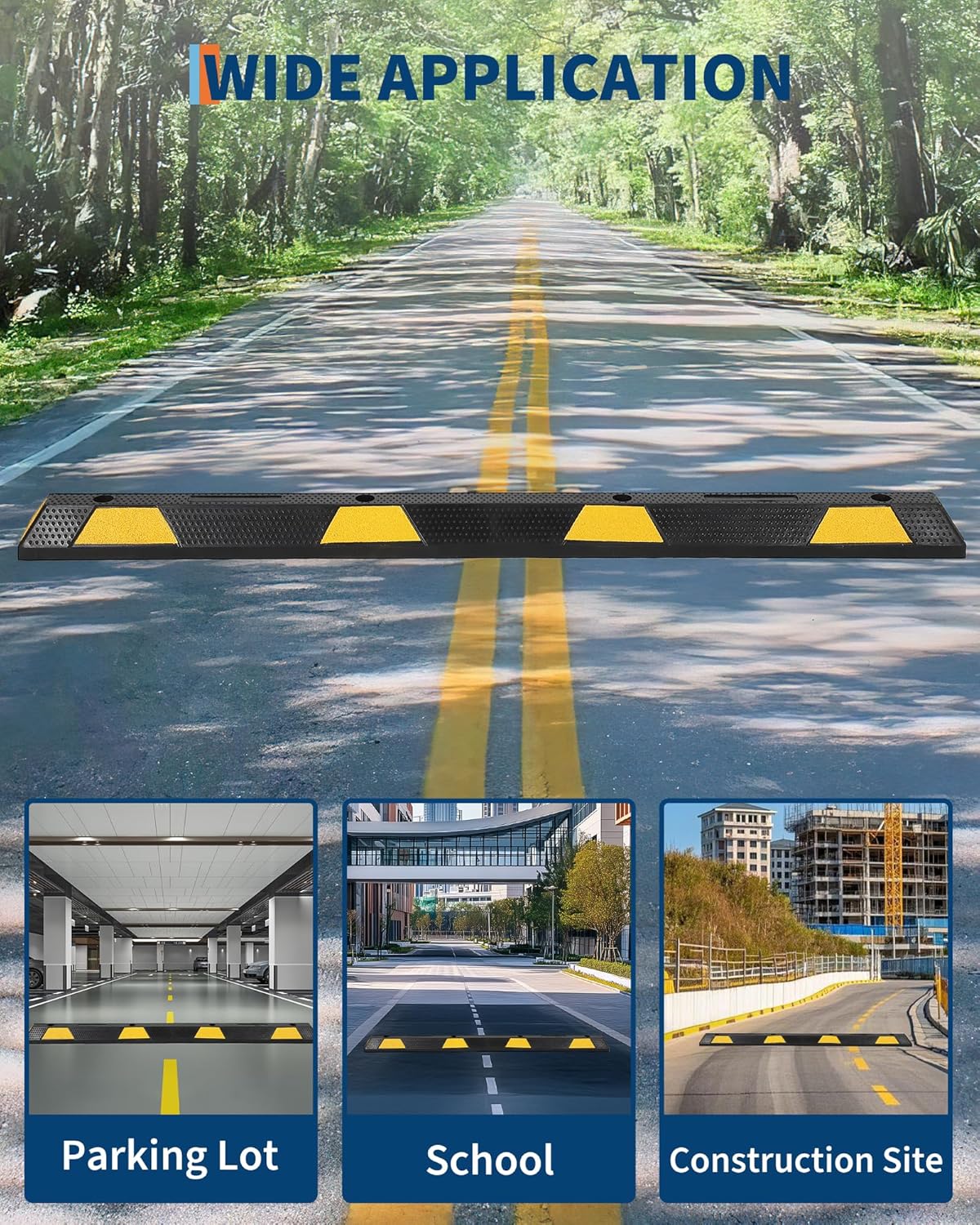 2 Pack 72" Rubber Parking Curb, Heavy Duty Parking Stopper with 10 High Reflective Yellow Safety Stripes, Durable Garage Wheel Stoppers Parking Curb for Car, Truck, RV and Trailer