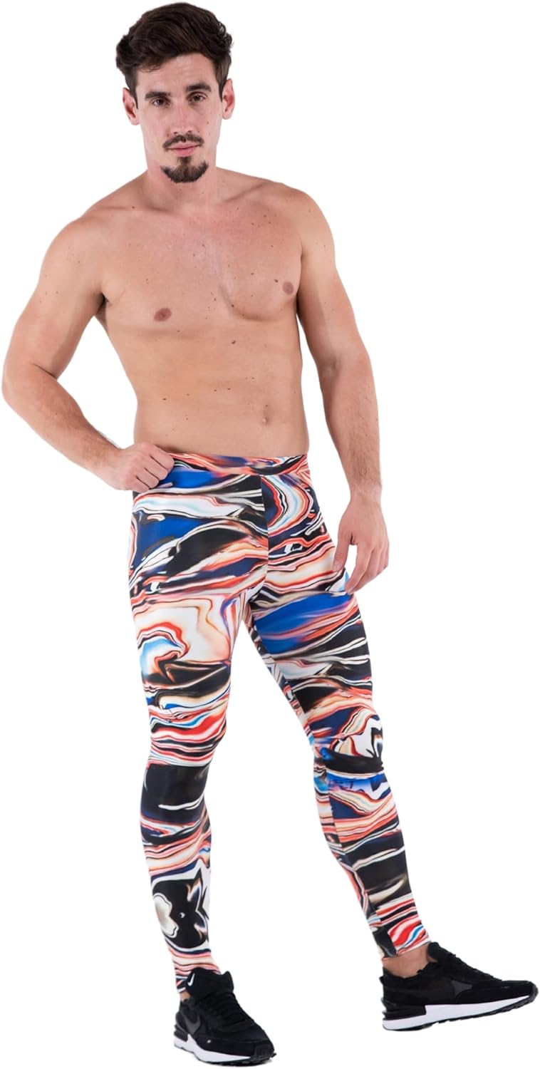 • MYSTIC MEN'S LEGGINGS WITH FUTURISTIC MULTICOLOR FLOW Mystic uses a smooth multicolor pattern that feels sleek, spellbinding, and visually fluid rather than loud or random.